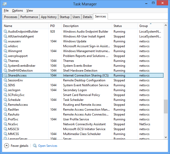 Windows 8 are probleme cu ICS! După multe încercări, începi să-ţi dai seama ce acest lucru. Ce se întâmplă de fapt este că există un serviciu numit SharedAccess, care se pare că porneşte înaintea altor servicii care… nu ar trebui. Din acest motiv, deşi interfeţele de reţea sunt configurate corect pentru a partaja internetul de la una la alta, acest lucru nu se întâmplă.